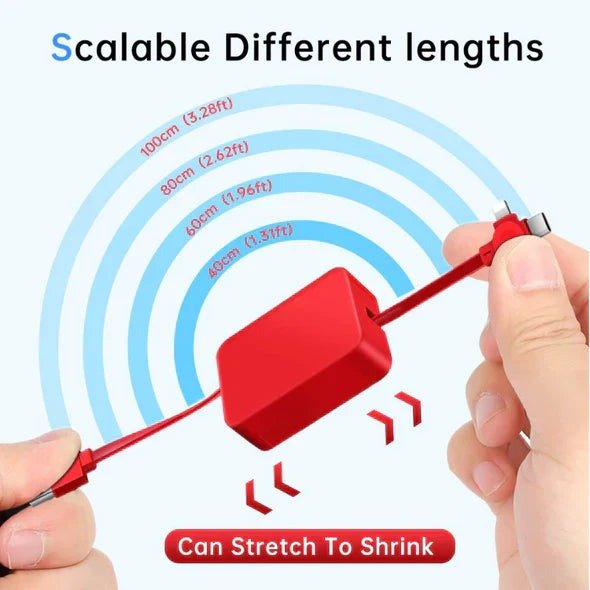 - 🔄 3 في 1: يحتوي على رؤوس شحن متنوعة (Type-C، Lightning، Micro USB) لتلبية جميع احتياجاتك.